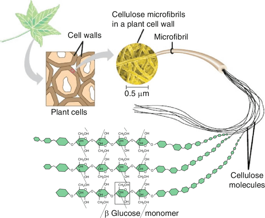 Cellulose is a major structural carbohydrate that is present in plant cell walls. Cellulose is a major component of all fiber-rich feed materials including forage and important agricultural process refuse, such as cane sugar bagasse. Cellulose is digested by ruminants thanks to enzyme produced by some cellulolytic bacteria.