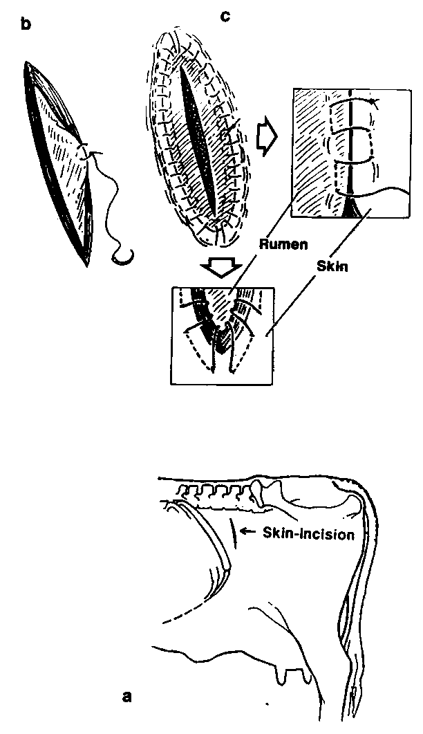 Incision into the rumen, typically in order to remove its contents and relieve impaction or stasis; an instance of this. Rumenotomy is one of the most widely used surgical techniques for the diagnosis and treatment of different rumen conditions in ruminants. It is commonly used for large ruminants, such as cattle.